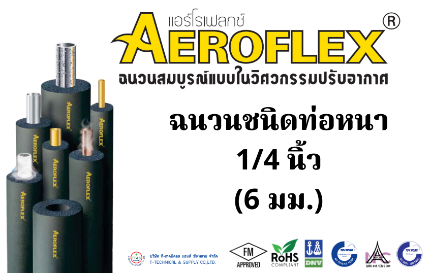 Aeroflex ฉนวนยางดำชนิดท่อหนา 1/4 นิ้ว ขนาดยาว 6 ฟุต (1.83 เมตร) / เส้น
