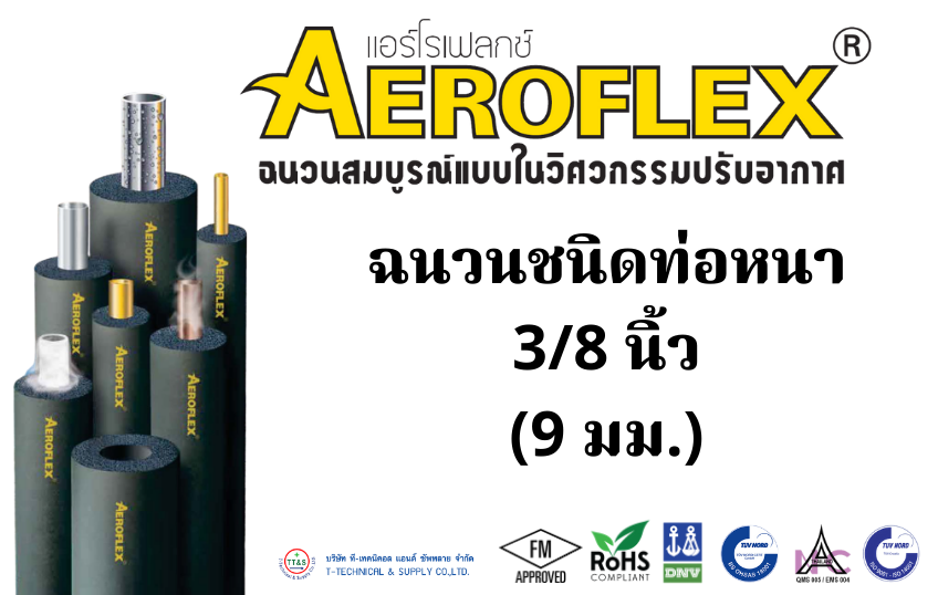 Aeroflex ฉนวนยางดำชนิดท่อ ขนาดยาว 6 ฟุต ( 1.83 เมตร ) ความหนา 3/8 นิ้ว( 9 มม. )