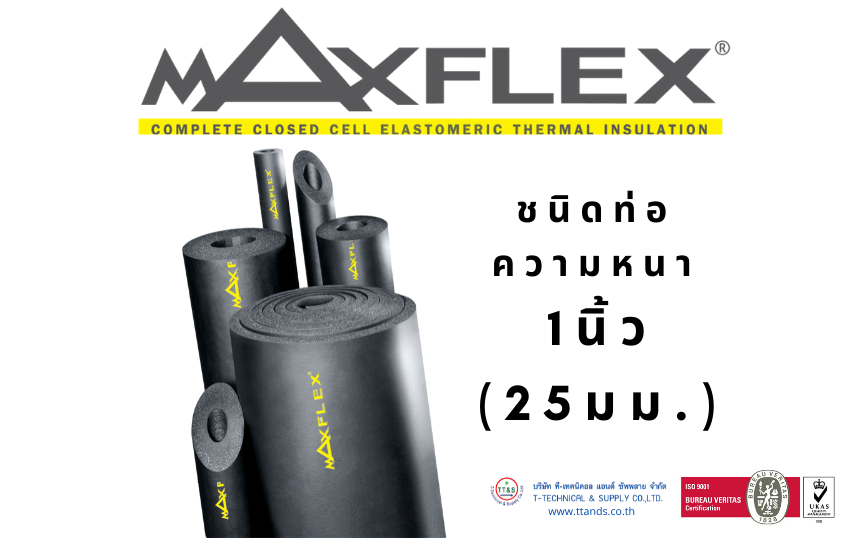 MAXFLEX ฉนวนยางดำ ชนิดท่อ ขนาดยาว 6 ฟุต (1.83 เมตร ) ความหนา 1 นิ้ว ( 25 มม. )