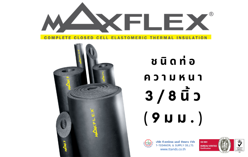 MAXFLEX ฉนวนยางดำชนิดท่อ ขนาดยาว 6 ฟุต ( 1.83 เมตร ) ความหนา 3/8 นิ้ว( 9 มม. )