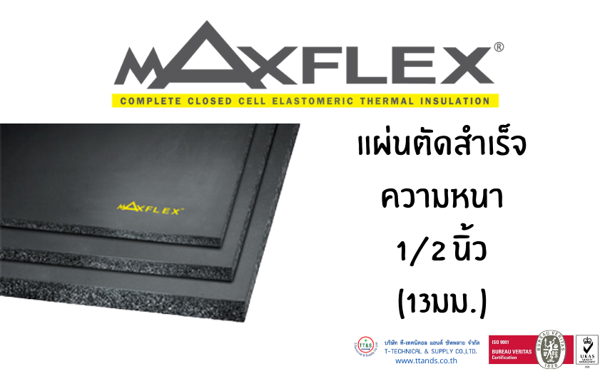 MAXFLEX ฉนวนยางดำ ชนิดแผ่นตัดสำเร็จ ยาว 4 ฟุต /แผ่น ยาว 4 ฟุต/แผ่น สำหรับหุ้มท่อน้ำเย็น ความหนา 1/2 นิ้ว (13 มม.)