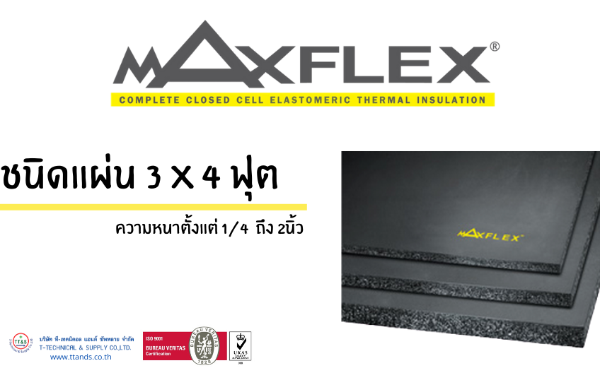 MAXFLEX ฉนวนยางดำ ชนิดแผ่น ขนาด 3x4 ฟุต (0.92 เมตร x 1.22เมตร = 1.122 ตารางเมตร )/แผ่น